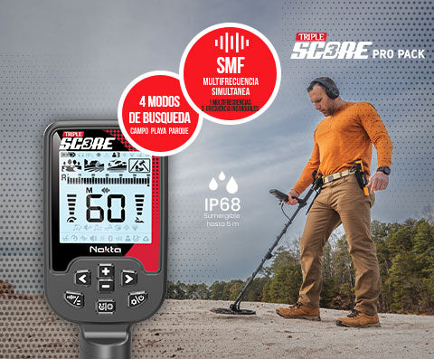 Descubra el innovador TRIPLE SCORE Pro Pack de NOKTA, un verdadero revolucionario en la detección de tesoros con su tecnología multifrecuencia simultánea (SMF). Este dispositivo robusto y totalmente resistente al agua combina características esenciales en un diseño elegante y ergonómico. Ahora, con TRIPLE SCORE, disfrute de funciones aún más avanzadas diseñadas para quienes exigen lo mejor en sus equipos de detección.